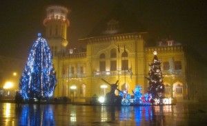 Brazi, centru, CraciunOraşul unicat. Aşa poate fi descris Buzăul în aceste zile dinaintea sărbătorilor de iarnă şi asta pentru că centrul oraşului are de două zile doi brazi de iarnă, foarte aproape unul de celălalt. Pentru că buzoienii nu s-au arătat prea încântaţi de bradul natural pe care autorităţile l-au împodobit de Moş Nicolae, au trimis zeci de cereri către Primărie pentru a aduce un alt brad care să facă cu adevărat cinste oraşului. Dorinţa buzoienilor le-a fost îndeplinită, numai că acum municipiul Buzău este unic în ţară, având doi pomi de iarnă. „E cam ciudat cu doi brazi, trebuia unul mare şi gata, ce în familie iei doi bazi de iarnă. Cred că şi cheltuielile au fost mai mari”, ne-a spus un buzoian de 51 de ani. Alţii sunt însă mulţumţi că centrul oraşului a primit un pom de iarnă pe măsură, mai ales că cel plantat era prea mic. „Cel plantat nu prea ne făcea cinste, a făcut bine că a adus unul mare, dar parcă şi cu doi brazi în centru nu e bine”, spune un alt buzoian. Bradul cel nou a fost dăruit oraşului de către oamenii din Harghita pe lângă cel achiziţionat pentru Orăşelul Copiilor, municipalitatea plătind pentru el doar transportul pe o distanţă de 250 de metri. Bradul tăiat are 20 de metri, fiind mai înalt cu cinci metri faţă de cel plantat.