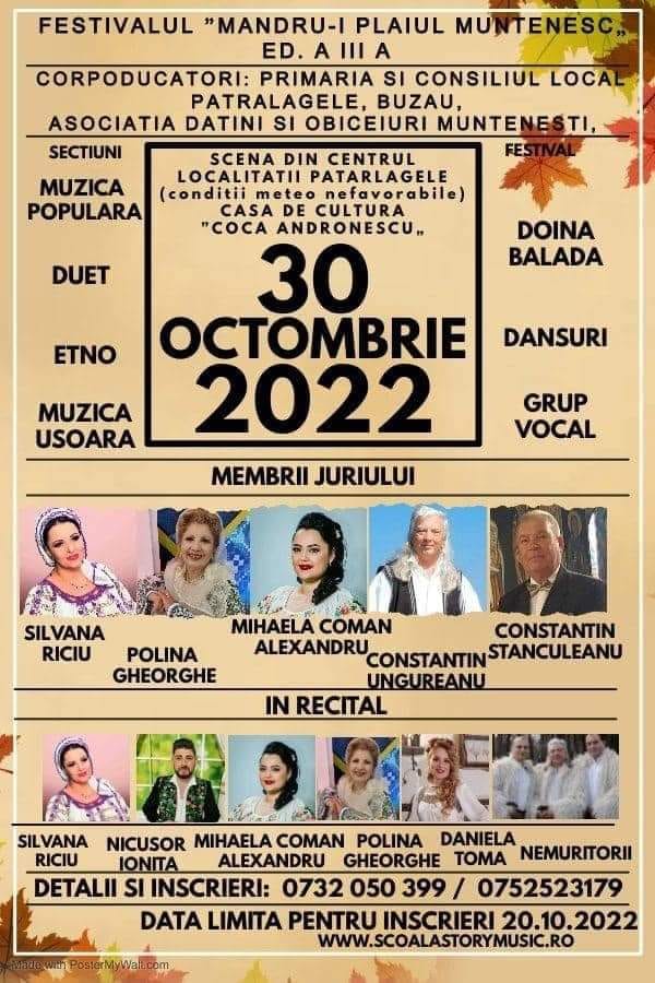 Festivalul „Mândru-i Plaiul Muntenesc” organizat de Primăria și Consiliul Local Pătârlagele în colaborare cu Asociația Datini și Obiceiuri Muntenești, a ajuns la a III-a ediție.