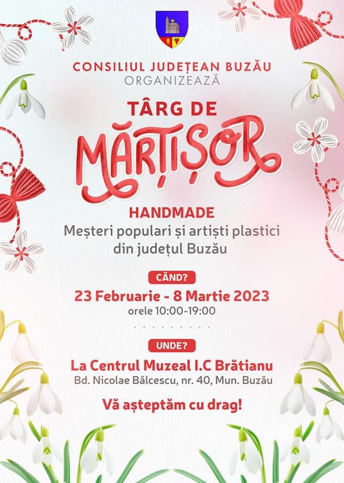 ,,Centrul Muzeal I.C. Brătianu găzduiește Târgul de mărțișor în perioada 23 februarie – 8 martie, unde veți găsi mărțișoare create cu mult drag și îndemânare de către meșteri populari și artiști plastici buzoieni. Este un moment foarte bun să le arătăm aprecierea noastră.” , a anunțat președintele Consiliului Județean, Petre Emanoil Neagu.