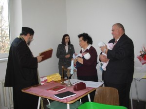 botez, consiliul judetean, trei baieti, Victor MocanuPresedintele Consiliului Judetean, Victor Mocanu, a botezat, astazi, impreuna cu sotia sa, Rodica, pe trei dintre micutii abandonati recent la Maternitatea Buzau. In cadrul unei ceremonii care s-a desfasurat intr-o incapere a Maternitatii, Andrei, Marian si Elvis, au primit Sfanta Taina a Botezului si au primit, drept cadou, o pereche de parinti spirituali.