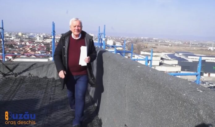 Anunț făcut într-un mod inedit de primarul municipiului Buzău. Constantin Toma s-a urcat pe acoperișul unui bloc turn aflat în reabilitare, în zona rondului cu avion, de unde a transmis un mesaj cu privire la proiectele de renovare energetică și de consolidare în care sunt incluse zeci de imobile din orașul Buzău, investiții realizate cu fonduri europene.