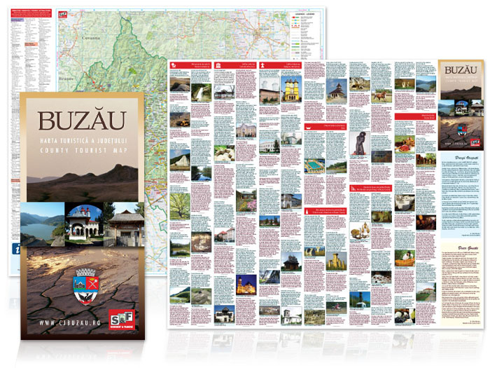 Sunt concepute 50.000 de pliante ca un mini-ghid al judetului Buzau (in limba romana si in limbi de circulatie internationala) si ofera informatii legate de principalele evenimente culturale organizate in cadrul Muzeului Judetean Buzau si la Teatrul „George Ciprian”, date de contact ale centrului de informare turistica din cadrul muzeului si principalele servicii oferite, obiectivele turistice din judet si modalitatea de acces catre acestea, informatii despre posibilitatile de cazare existente in judet, produsele gastronomice specifice si locatiile de unde acestea pot fi procurate, modalitati de petrecere a timpului liber, un calendar al evenimentelor culturale si religioase din judetul Buzau, locuri de campare, statii de alimentare cu combustibil, date de contact ale principalilor furnizori de servicii din judetul Buzau etc.