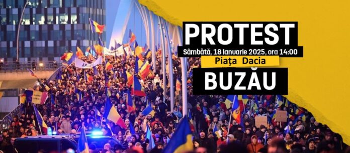 ,,Sâmbăta, 18.01, la orele 14:00, buzoienii care doresc să își facă vocea auzită cu privire la realitățile politice și la abuzurile instituționale întâmplate în aceasta perioadă sunt așteptați în Piața Dacia la un protest pașnic, dar menit să atragă atenția autorităților locale și centrale că românii își doresc ca voința pe care au exprimat-o la vot să fie respectată! Din Piața Dacia, buzoienii prezenți se vor îndrepta spre Prefectura județului Buzău. Protestul, deși organizat de filiala județeană AUR Buzău, nu va fi folosit drept propaganda electorală, iar participarea este deschisa oricărui cetățean care nu mai vrea un județ și o țară conduse de baroni locali și care nu mai vrea ca instituțiile statului, precum CCR, să fie folosite împotriva sa!