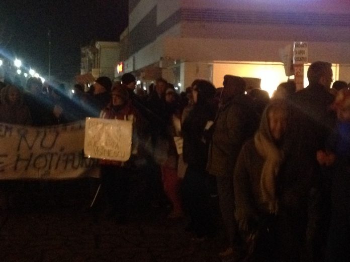 Aproximativ 300 de protestatari s-au adunat in aceasta seara in centrul orasului, pe Platoul Dacia.