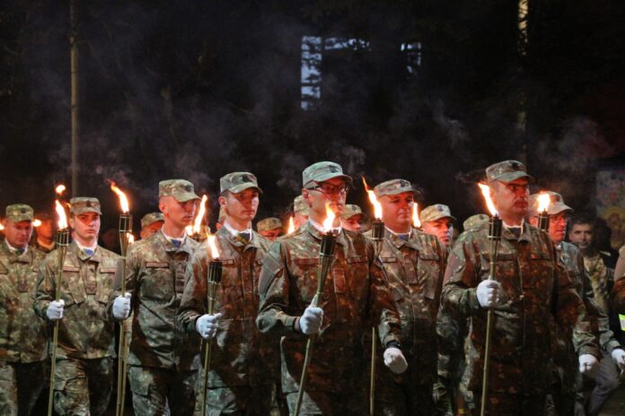 de la ora 19.00 va începe audierea unui colaj de marșuri militare susținut de Muzica Militară a Diviziei 2 Infanterie “Getica”, se vor pregăti detaşamentul şi torţele pentru aprindere. Apoi, militarii se vor deplasa pe următorul traseu: Piața Dacia – Aleea Trandafirilor – str. Ostrovului – Bd. Unirii – Bd. Mareşal Alexandru Averescu – U.M. 02470 Buzău.