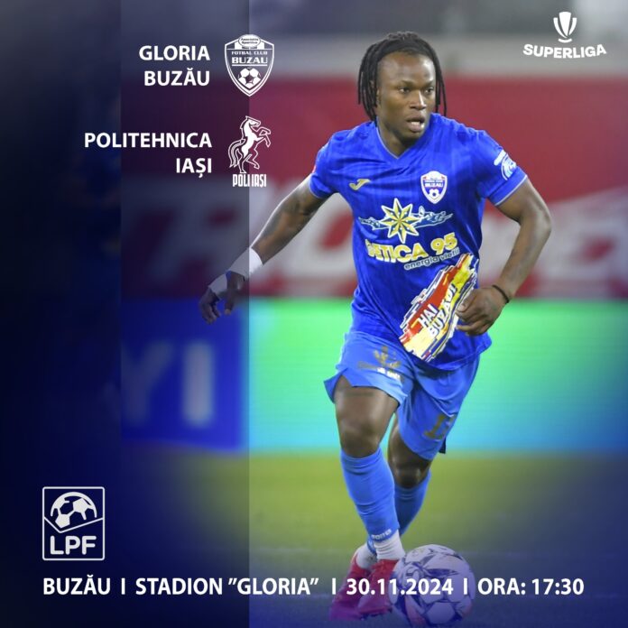 Clubul Gloria Buzău a pus în vânzare biletele pentru meciul dintre Gloria Buzău și Politehnica Iaşi, programat să se joace sâmbătă, 30 noiembrie, de la ora 17:30, pe stadionul din Crâng.