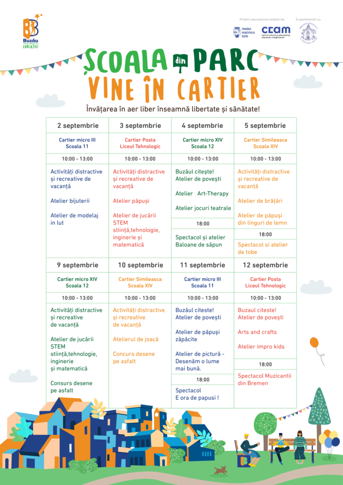Începând de astăzi, 2 septembrie, Școala din parc vine în cartier!