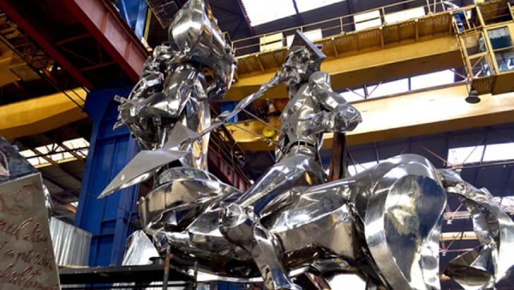 Ansamblul sculptural din inox, unic în lume prin complexitate, realizat de buzoianul Bogdan Adrian Lefter ca un omagiu adus artistului Octavian Florinel Dinu, va fi amplasat în primul sens giratoriu de la intrarea în municipiul Buzău dinspre Rm. Sărat. Asta s-ar putea întâmpla până de Paște. Consilierii municipali buzoieni și-au dat ieri acordul pentru eliberarea certificatului de urbanism necesar emiterii autorizației pentru amplasarea pe terenul proprietate publică a municipiului Buzău, în sensul giratoriu situat la intersecția B-dului Unirii și străzii Nicu Constantinescu din cartierul Orizont, a ansamblului monumental „Ing. Florin Dinu”, executat cu sprijinul „Rotec” S.A. Buzău. Eliberarea autorizației a fost condiționată de acordarea prin contract de comodat a dreptului de folosin]ă cu titlu gratuit pentru o perioadă de 50 de ani a ansamblului monumental de către „Rotec ” S.A. Buzău către Primăria municipiului Buzău, obținerea avizelor beneficiarilor de rețele subterane din zonă, precum și avizului Direcției Județene pentru Cultură, Culte și Patrimoniu Cultural Național Buzău. Artistul buzoian Bogdan Adrian Lefter este deja celebru pe plan internațional pentru sculpturile sale realizate în cadrul unor simpozioane și concursuri de prestigiu din țări precum China, Elveția, Japonia și Thailanda, remarcându-se față de ceilalți artiști internaționali prin originalitatea și monumentalitatea lucrărilor sale. În ciuda reușitelor pe plan internațional, visul lui Bogdan Adrian Lefter a rămas acela de a contribui la înfrumusețarea orașului natal. Șansa a fost oferită de omul de afaceri Nicu Dinu, administratorul Grupului Rotec, care i-a oferit tot sprijinul material și uman pentru realizarea acestei impresionante sculpturi. Potrivit artistului, lucrarea este realizată într-o manieră complexă și originală, și asta pentru că nimeni nu se încumetă să realizeze în inox atâtea detalii, deoarece este o muncă titanică (pentru această lucrare fiind necesari aproximativ doi ani), preferându-se, în general, formele abstracte.