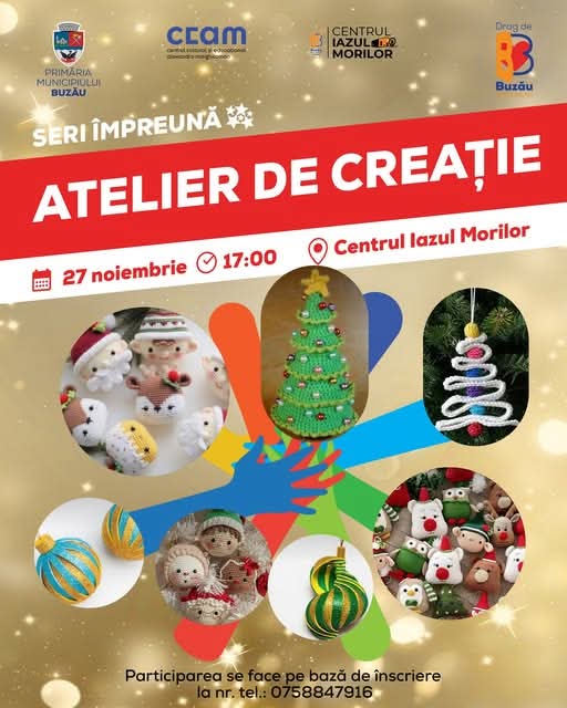 Seniorii buzoieni sunt invitați la un atelier de creație specific sărbătorilor de iarnă. Mâine, 27 noiembrie, de la ora 17:00, la Centrul Iazul Morilor, participanții vor realiza decorațiuni de Crăciun.
