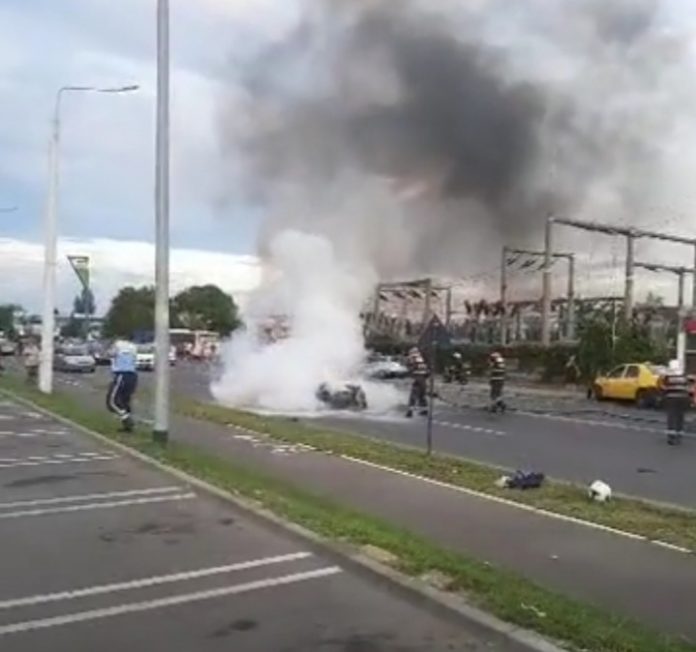 Detalii incredibile au iesit la iveală în urma evenimentului produs în această seară, pe Calea Eroilor, accident în urma căruia un polițist a fost ușor rănit, după ce a fost acroșat de o mașină, în timp ce se afla pe motocicletă. După ce a fost acroșat, polițistul a ricoșat într-un taxi, motocicleta luând foc.