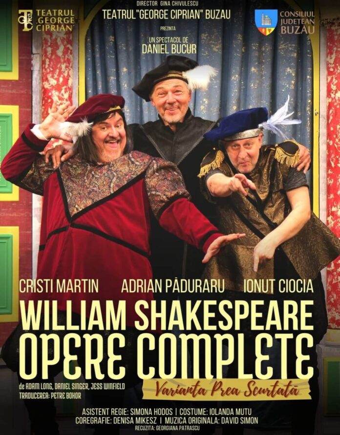 Pe 19 februarie, ora 18:00, Teatrul „George Ciprian” prezintă WILLIAM SHAKESPEARE – OPERE COMPLETE – varianta prea scurtată, cea mai recentă PREMIERĂ a Teatrului „George Ciprian”, în regia lui Daniel Bucur.