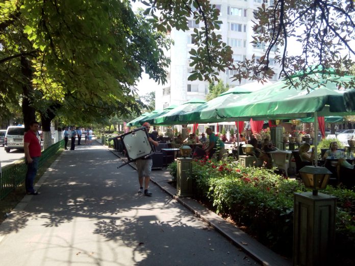 Aşa se face că astăzi, clinţii au fost rugaţi de poliţiştii locali să elibereze zona şi au impus ridicarea meselor amplasate ilegal pe domeniul public.