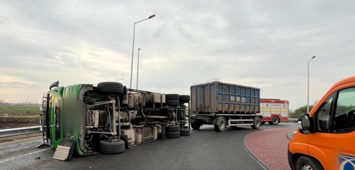 Centrul INFOTRAFIC din Inspectoratul General al Poliţiei Române informează că pe breteaua de acces către autostrada A7 Buzău-Focșani, în zona localității Vadu Pașii, județul Buzău, un autotren încărcat cu deșeuri reciclabile s-a răsturnat pe suprafața de rulare, conducătorul acestuia a suferit leziuni și a fost transportat la spital, în stare de conștiență.