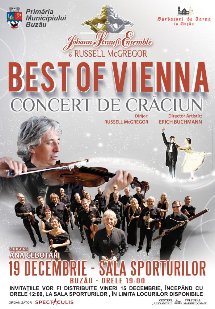 Îndrăgita orchestră Johann Strauss Ensemble ajunge anul acesta și în Buzău. Pe 19 decembrie, de la ora 19, în Sala Sporturilor „Romeo Iamandi” din oraș, vor răsuna cele mai frumoase ritmuri ale Crăciunului autentic vienez. Concertul are loc la inițiativa Primariei Municipiului Buzău.