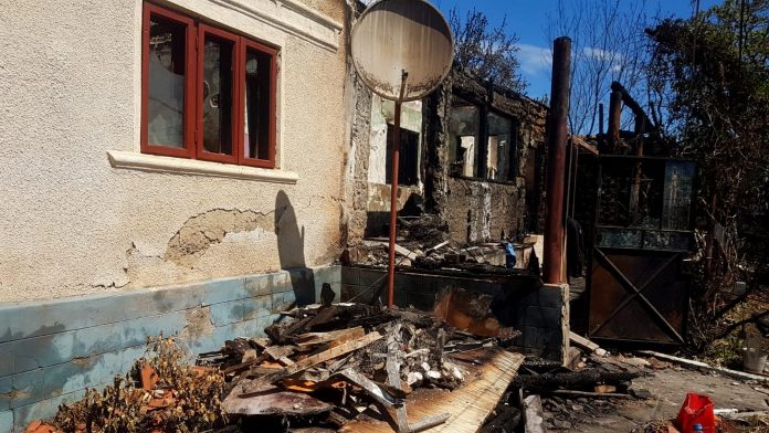 La momentul incendiului, casa bătrânească era construită din paiantă și avea atașate două camere „la roșu”, din BCA, aflate în lucru la momentul dezastrului.