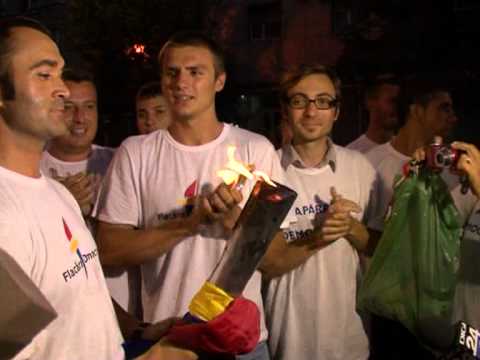 Simbolul luptei pentru o ţară democratică, ” Flacăra Democraţiei”, a doua, a fost adusă aseară în centrul Buzăului. Tinerii democrat liberali au preluat-o de la colegii din Vrancea, la limita de judeţ la ora stabilită, 19. După un marş pe străzile din Rm Sărat, Flacăra a ajuns la marginea Buzăului. Pe podul de la Mărăcineni , „podul lui Băsescu”, flacăra a fost purtată de tineri cu entuziasm în pofida vântului puternic care a pus nenumărate piedici. Şoferii care se aflau în trafic la acea oră au claxonat în semn de respect coloana tinerilor democrat-liberali. Odată ajunsă în centrul Buzăului , Flacăra Democraţiei a poposit pe platoul Dacia unde mai mulţi buzoieni s-au adunat şi au aplaudat mesagerii. Cel care a adus simbolul democraţiei în Buzău, George Georgescu a precizat că flacăra s-a stins de mai multe ori însă acest lucru dă de înţeles că pentru democraţie trebuie să lupţi. Tot purtătorul flăcării a mai spus că a rămas plăcut surprins de atitudinea şoferilor care au claxonat admirativ şi de faptul că în pofida „culorii roşii’ pe care o are judeţul nostru nu au existat niciun fel de piedici din partea adeversarilor politici de la putere. Preşedintele organizaţiei de tineret a PD-L , Eliza Panait a declarat la rându-i că lipsa ostilităţii politicienilor care au altă opinie decât cea democrat-liberală poate fi o dovadă de bun simţ şi de ce nu chiar de domnie. Flacăra Democraţiei va fi purtată astăzi pe străzile municipiului , după care va ajunge în localităţile de pe Drumul Vinului şi apoi va fi predată tinerilor democrat liberali din Prahova. Schimbul de ştafetă va fi la graniţa celor două judeţe, undeva în jurul orei 19. Flacăra Democraţiei a fost aprinsă de preşedintele suspendat Traian Băsescu pe 14 iulie la Cluj, unde a fost organizat primul miting de amploare pentru susţinerea sa. Duminică seara primarul liberal al oraşului Orşova, Ion Manea a luat flacăra de la tânrul care o purta şi a aruncat-o într-un canal al Dunării. Prşedintele a comentat incidentul spunând că : „se vor aprinde foarte multe flăcări ale democraţiei zilele acestea”.