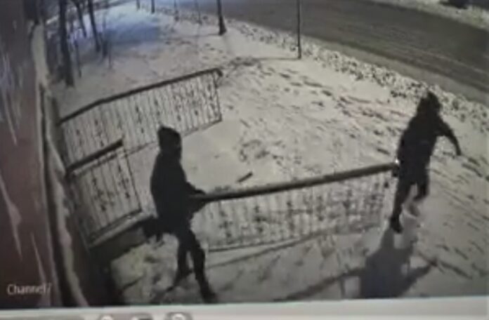 În imaginile postate de patronul agenției de turism se observă cum cinci tineri se apropie de balustrada de la intrare, unul dintre ei încearcă să smulgă o parte, apoi pleacă. La câteva secunde, se întorc doi dintre tineri, care smulg o balustradă și… pleacă cu ea.