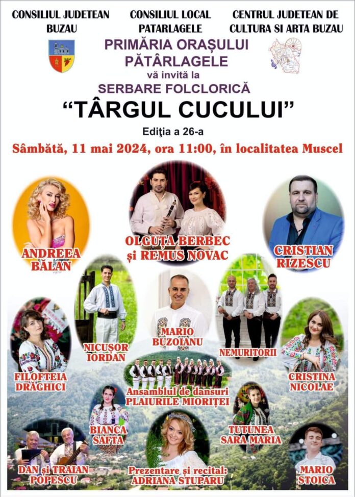 ,,Vă invităm cu drag la Târgul Cucului, ediția a XXVI-a, începând cu orele 11:00! Sărbătorim împreună tradiția și folclorul românesc într-o zi plină de muzică, dansuri și meșteșuguri autentice. Haideți să aducem împreună în prim-plan frumusețea culturii noastre! ” , este mesajul transmis de primarul orașului Patârlagele, Ion Gherghiceanu.